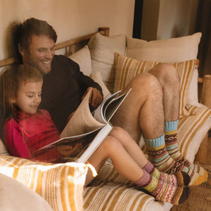 Verwöhne ihre kleinen Füße mit einem Paar süßer, nordisch inspirierter Socken! Das Ida-Bundle ist dick und anschmiegsam und hält die Füße deiner Kinder warm und geschützt. Kräftige Gelb-, Lila-, Rot- und Blautöne peppen den klassischen nordischen Aufdruck auf.